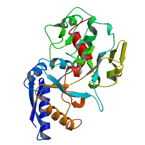 These strings coil up into complex shapes and sometimes harbor binding sites which can cause a specific bond to form (or break). A protein that catalyzes a chemical reaction is an enzyme.